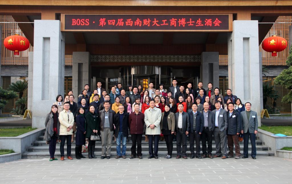 On November 30th 2013, the forth Doctorial Wine Party of School of Business Administration of SWUFE was successfully held in Guzhenghuifeng Hotel, Jiezi Old Town, Chongzhou, Sichuan. Guests participated in the party include Feng li, branch secretary of the Party Committee in School of Business Administration; Zhang Jianbo, branch deputy secretary of the Party Committee in School of Business Administration; Fu Xiaorong, vice-dean of the School of Business Administration; He Jie, assistant to the dean of the School of Business Administration; Liu Zhong, assistant to the dean of the School of Business Administration; Wang Yang, assistant to the branch secretary of the Party Committee in School of Business Administration; Professor Zhou Diankun, extramural doctoral tutor; Professor Li Yiming, Professor Feng Jian, Professor Huang Xu, Associated Professor Jin Jiafei, Associated Professor Xiao Huilin, Associated Professor Chen xiaogang; Gui Bo, teacher of Alumni Association of School of Business Administration, doctor alumnus and doctor students. The party was sponsored by Lvchengqingshuiwan Real Estate Co., Ltd., BOSS Periodical Office, Hui Feng Hotel, Shierhai Lengquan Mineral Water Company, etc.