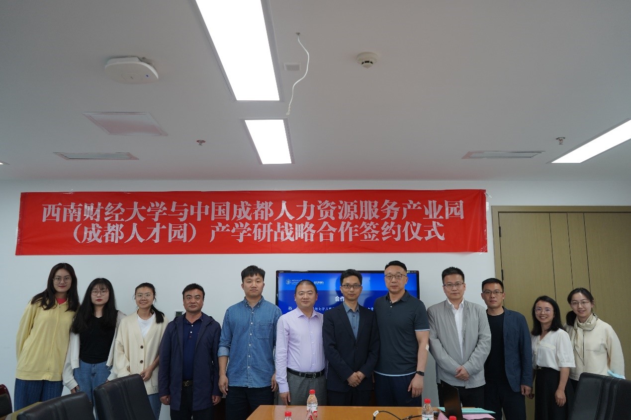 5月22日下午,公司与中国成都人力资源服务产业园(成都人才园)战略合作协议签约仪式在柳林校区诚正楼1241会议室举行。成都人才园园区运营公司总经理王之川、合作发展中心负责人张根莱、产才规划专家杨丰滔以及园区企业代表四川省创享人力资源管理有限公司副总经理李明,公司副经理廖毅、人力资源管理研究所所长杨付、人力资源管理系副系主任余宇及师生代表参加仪式。