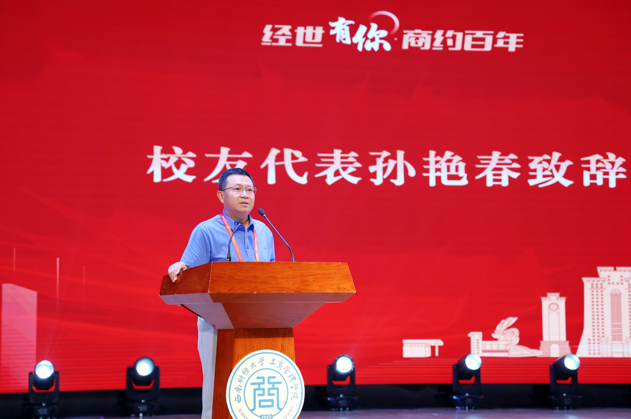 1993级市场营销专业员工、公司深圳员工会执行会长孙艳春作为员工代表在发言中动情回顾了求学期间的点滴记忆,表达了对母校和恩师的感恩与敬意,并表示将继续以实际行动支持威廉williamhill体育建设发展,与母校携手共赴新百年征程。